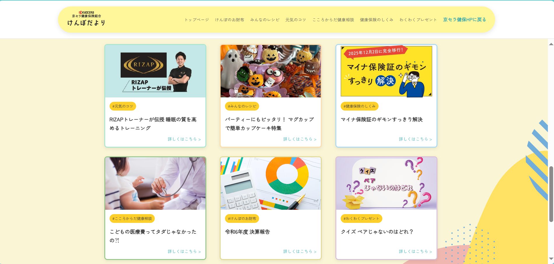 けんぽだよりではハロウィンにピッタリのレシピやライザップの睡眠改善ストレッチも掲載中(^^)/